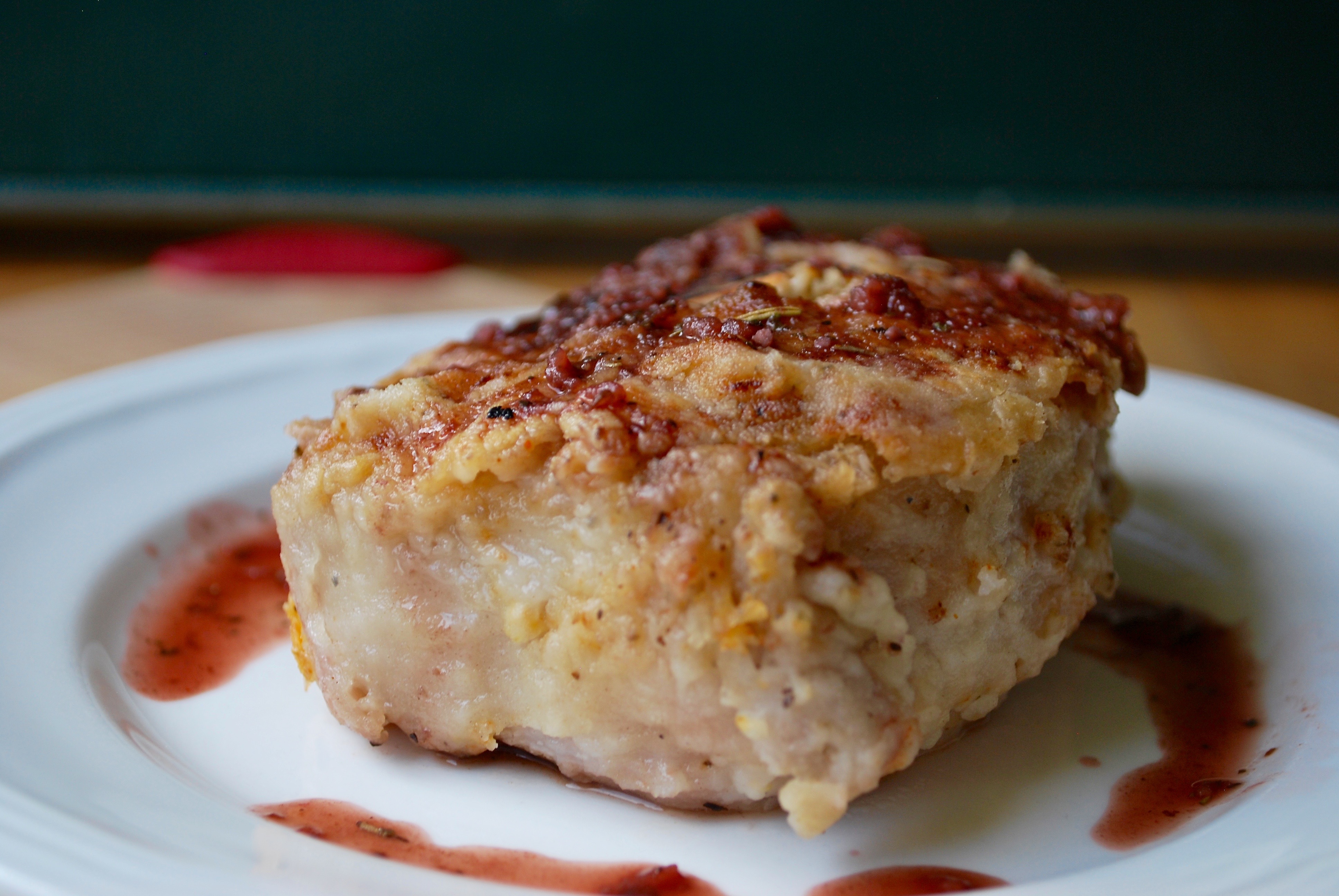 - Place pork-chops on a plate and sprinkle with salt, pepper, sugar, Italian seasoning and cayenne pepper. As much or as little as you wish.