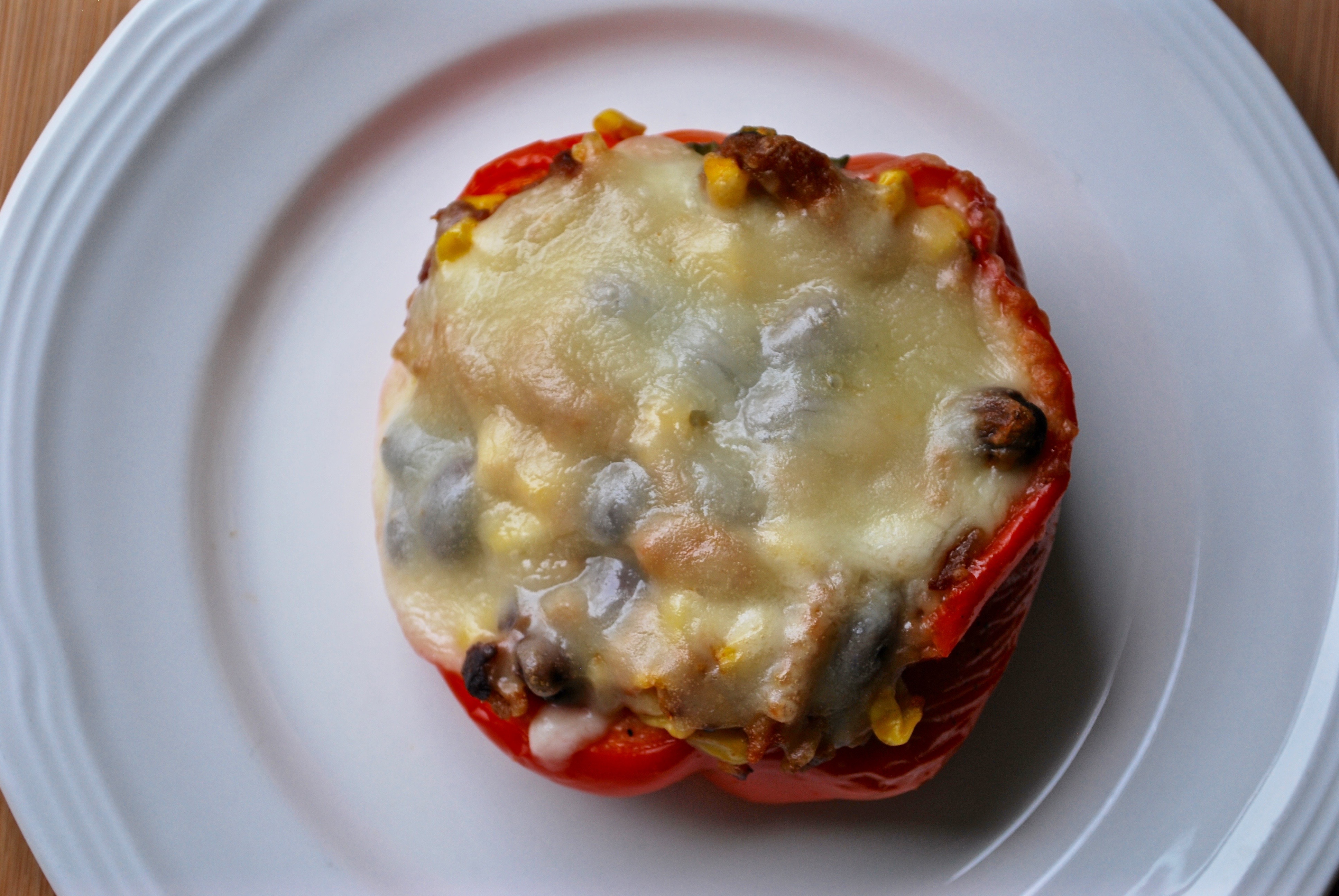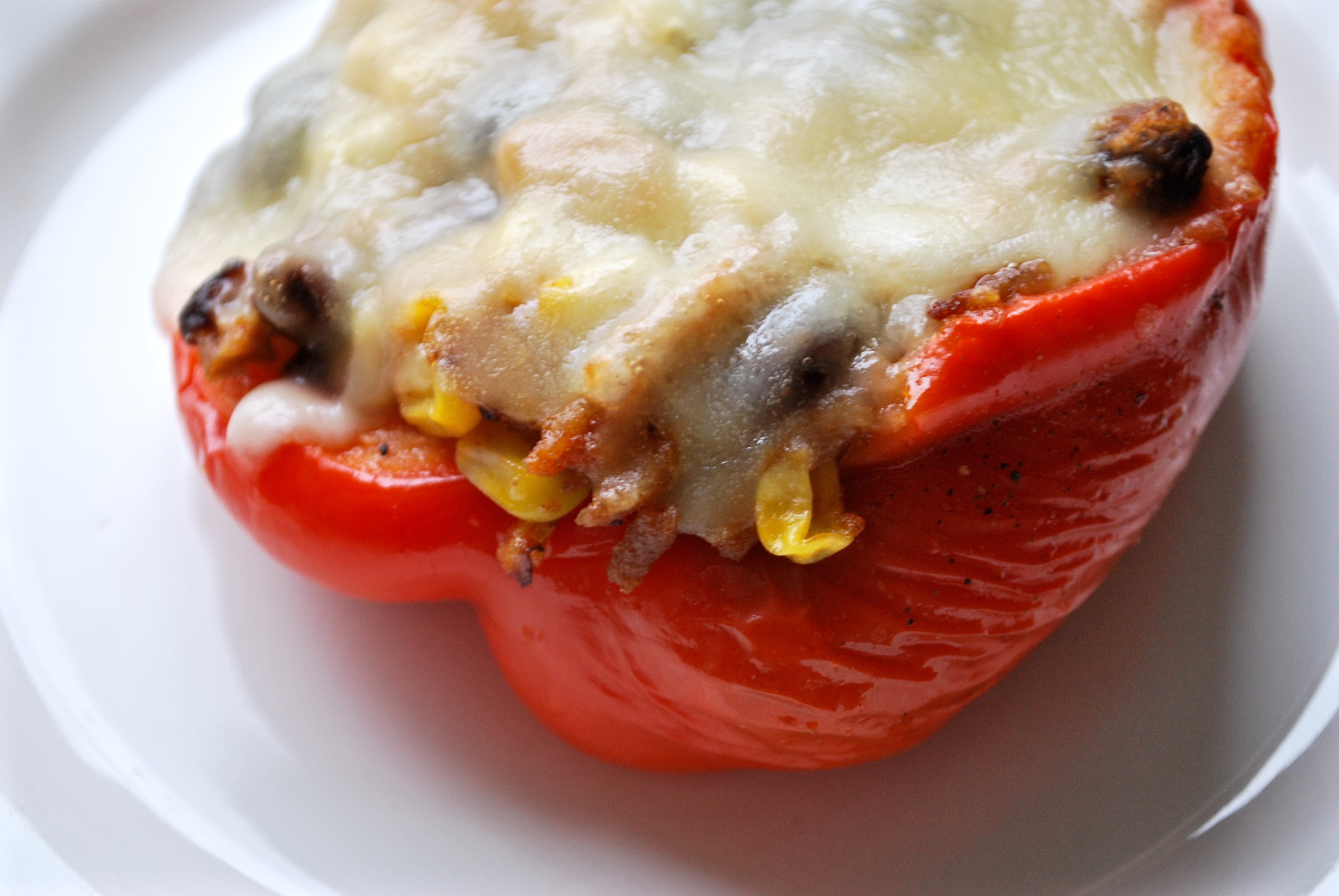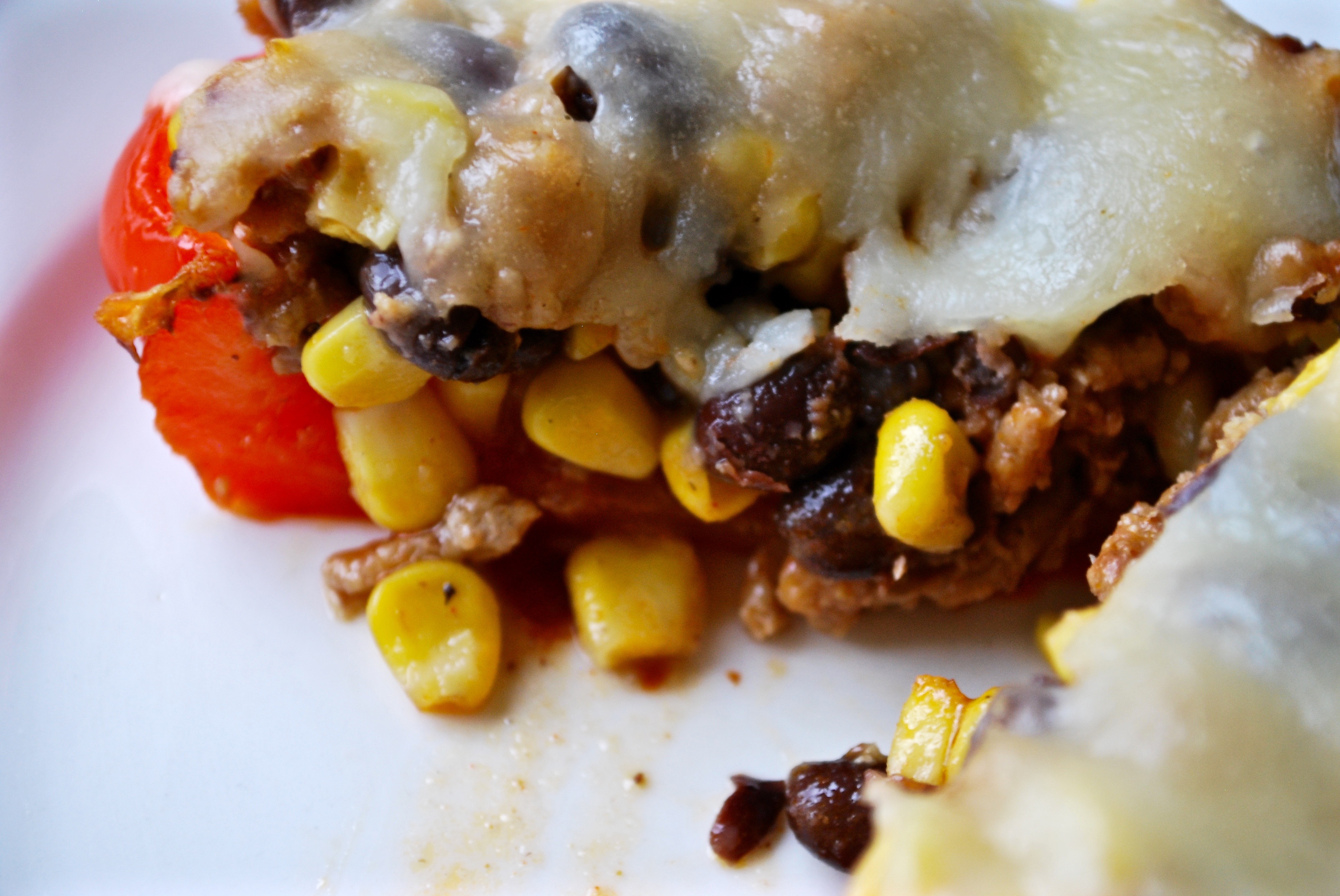 A quick and healthy recipe that I love making is stuffed peppers. I use ground turkey with corn and black beans! It’s so simple and perfect for a week night dinner. It takes about 30-40 minutes total. Which isn’t very long for something that tastes this good!
