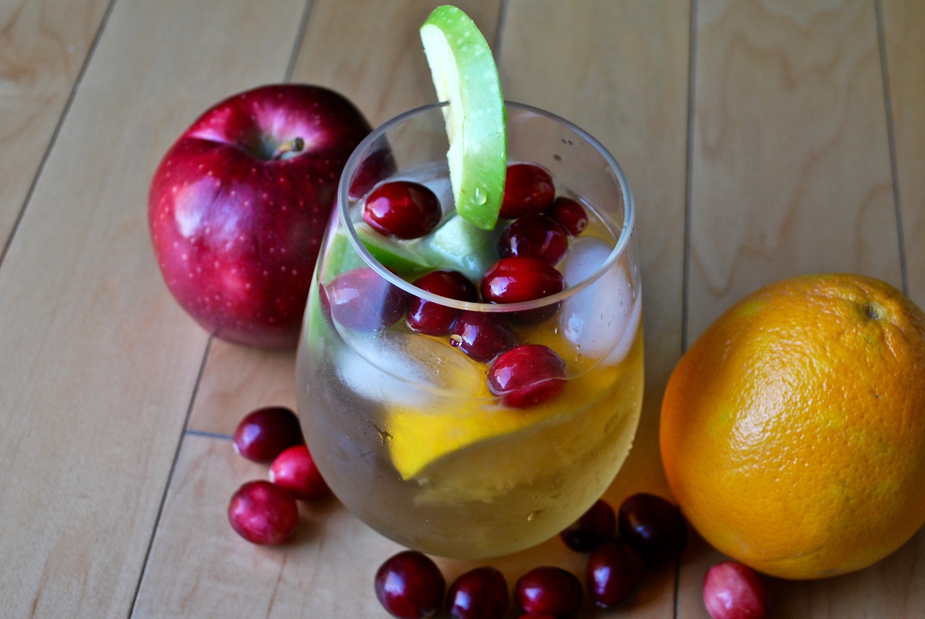 It’s Wine Wednesday!! Yay! You’re almost to Friday so let’s celebrate with this quick and easy sangria recipe! 🙂 Most people think Sangria is a summertime drink, but you can add fruits that give it a little bit of a fall flavor, like cranberries! Let’s get to it because I’m sure you’re ready for some wine 😉