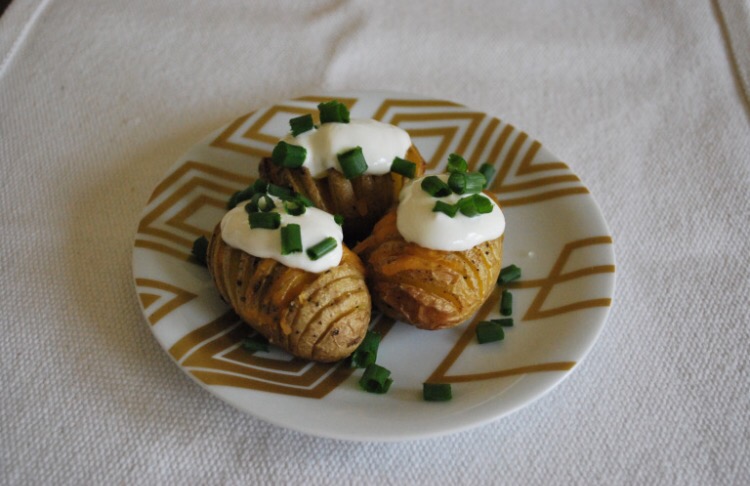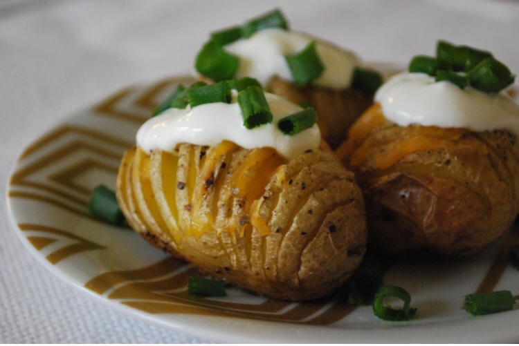 - Slice potatoes 3/4 of the way through. Be careful not to slice fully.