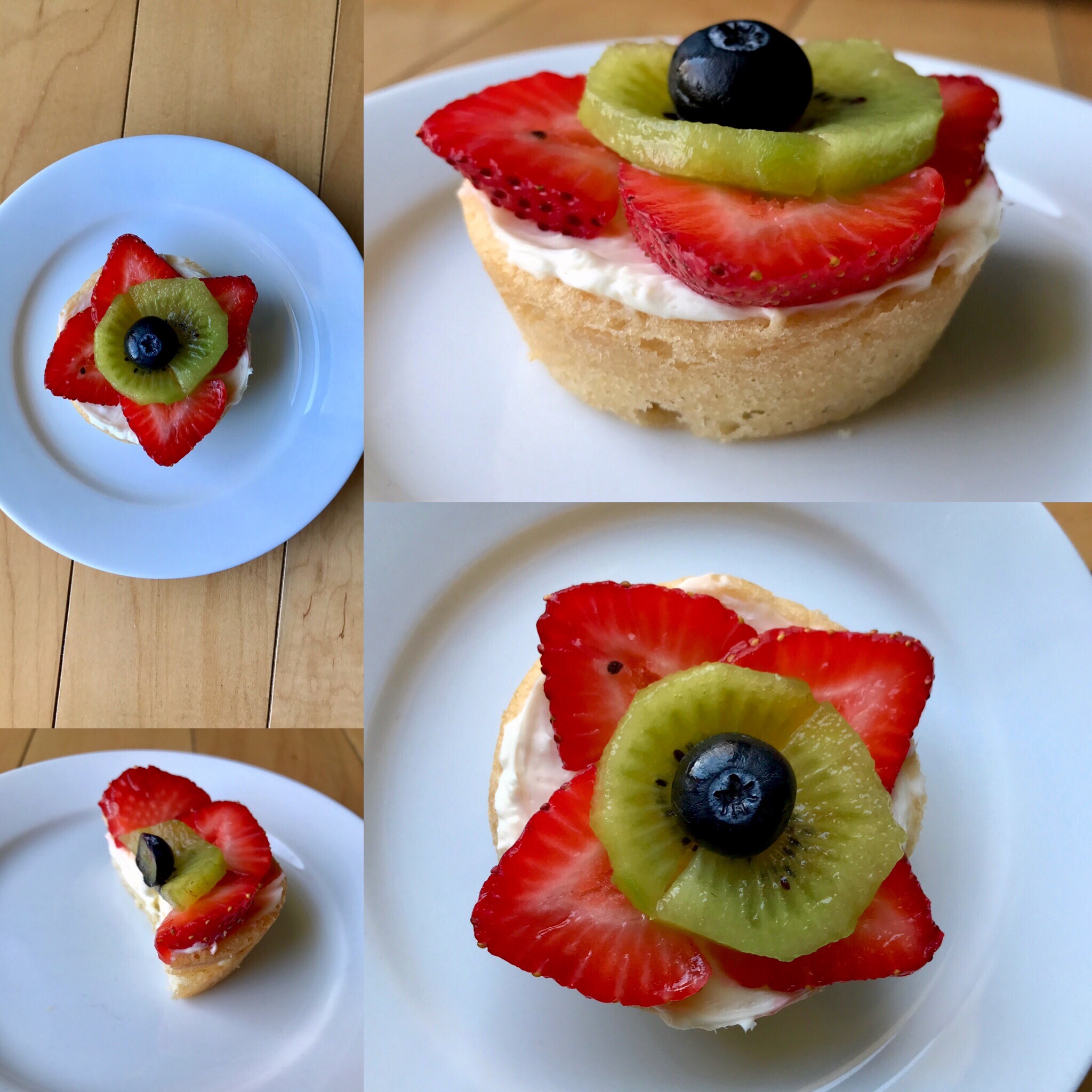 - Spoon in cheesecake mixture into each cookie cup. Place slices of strawberries and kiwis, top with a blueberry.
