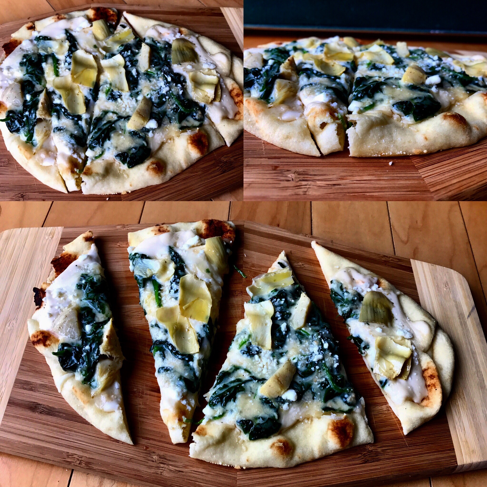 Lazy Sunday is here once again! Spinach and artichoke dip is one of my favorites so I thought I’d put a spin on it and turn it into a flatbread. Warning: this recipe is amazing. It’s also so simple to make! In under 20 minutes you will have 4 flatbreads that feed 4-5 people! Who doesn’t love that?! Let’s get started: