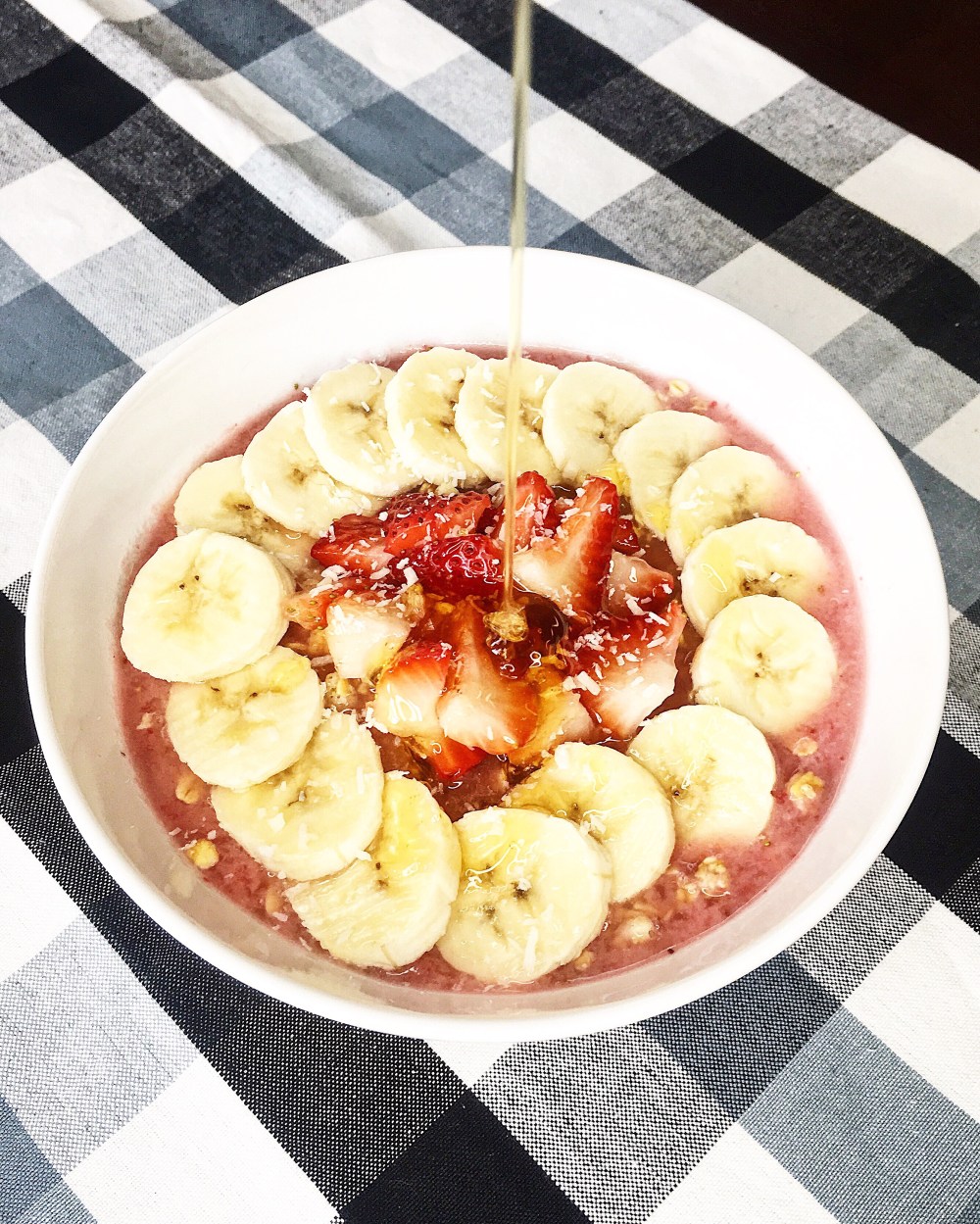 - Sliced strawberries and banana to top