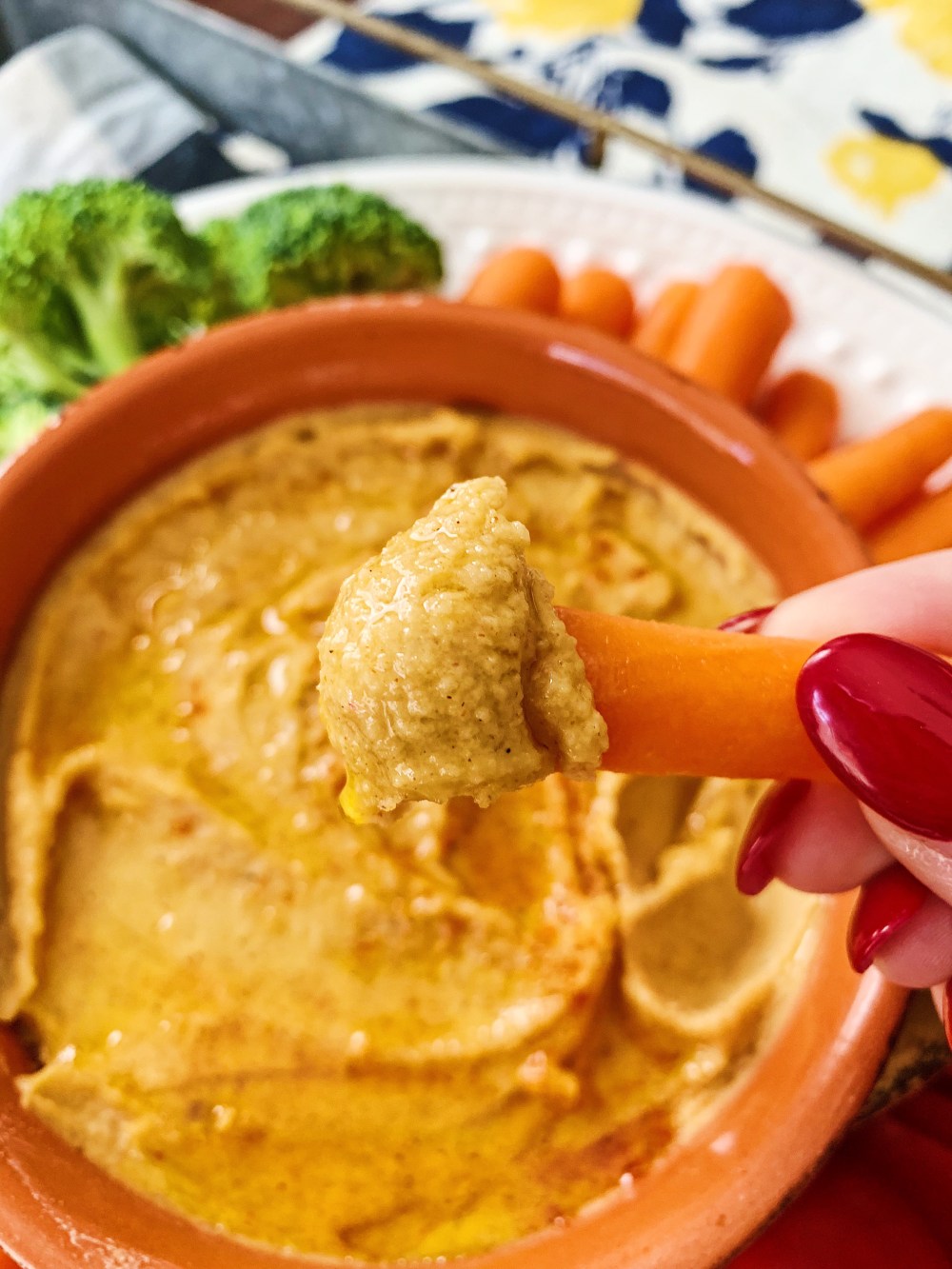 Today’s recipe focuses on healthy snacks! This is a good recipe to prep for your snacks throughout the week OR for a healthy veggie plate at a party! It’s the easiest recipe and only takes about 10 minutes to make. Chickpeas are a very nutritious food that can have many health benefits if incorporated in a balanced diet. They are rich in plant-based protein, can help support blood sugar control, benefit digestion, and even help control hunger!